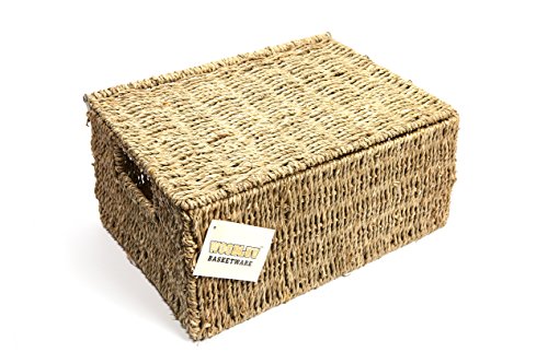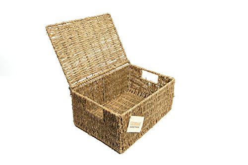 Woodluv Storage Boxes With Lids, Storage Baskets With lids, Woven Natural Seagrass, Storage Baskets for Shelves, Gift Hamper basket, Large