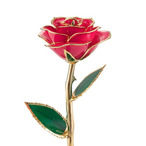 Material: Our Gold Trimmed Roses are carefully selected, picked at the peak of its beauty, preserved in lacquer and have 24k gold trim to preserve the roses for a lifetime.
