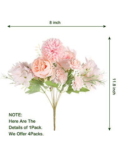 Abundant Consist: Come with 4 packs silk peony flowers in package, each pack has 7 stems with soft silk hydrangea, peonies, flower bubbles, plastic grass and bushy leaves that perfect for home decor with full-looking