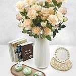 【 Package with Greeting Card 】- Each artificial rose bouquet is approx 65 cm/25.6″ high. Champagne flower head: approx 7.5cm/2.95″ diameter.With the greeting card, you can even use this beautiful flower bouquet as a meaningful gift for Wedding Bouquet,Valentine’s Day,Mother’s Day,Birthday,Christmas or Graduation etc.Special and lasting