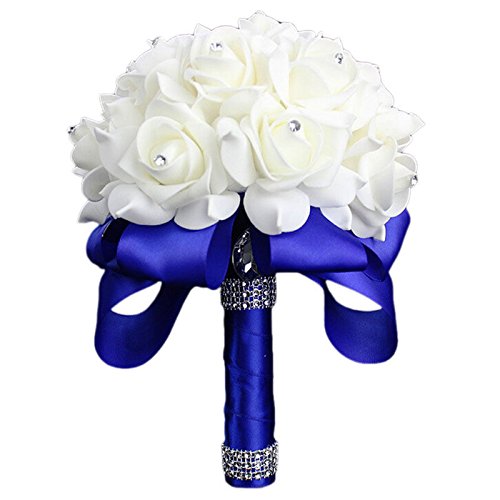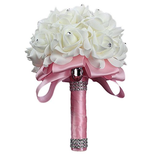 Starworld Wedding Flowers, Handmade Bridal Bridesmaid Bouquet Set in Ivory Foam Silk Roses for Wedding, Birthday
